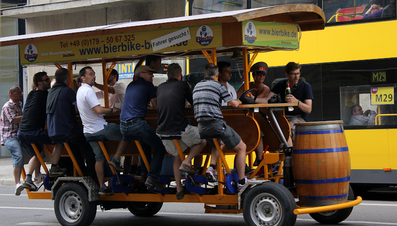 Föraren var den enda som inte cyklade – han är likaså den enda som inte dricker öl – åtminstone inte i tjänst. Vi hittade bland annat ordningsreglerna (”BierBike-Kodex”) på hemsidan www.bierbike-berlin.de och förstod varför. På nätet hittade vi spår av en ganska livlig debatt om lämpligheten av öl i trafiken… (kändes lite svenskt?)