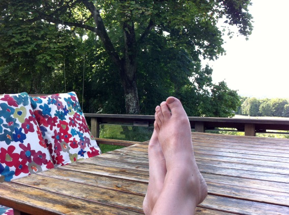 Först sitter man på terrassen och väntar på gästerna. Maken har provisoriskt satt upp tältet på gräsmattan, och hängt upp gungan. Det är till och med hyfsat städat. Bortom syrenbuskar och äng skymtar sjön med den lilla badplatsen.