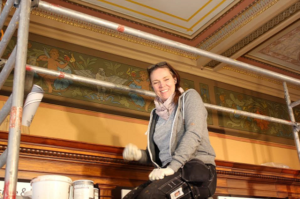Åter till Ugglan: Under sin långa tid på samma adress har det byggts om flera gånger, men man har varit varsam med de kulturhistoriska värdena, och butiksfasaden, delar av inredningen och takmålningarna lär vara intakta sedan slutet av 1800-talet. Fast tjejen vi pratade med, som just höll på att renovera målningarna, sa att en del av dem gjorts om betydligt senare (80-talet?). Själv blev jag som vanligt barnsligt förtjust i de gamla skåpen och hyllorna, som fortfarande är i bruk.