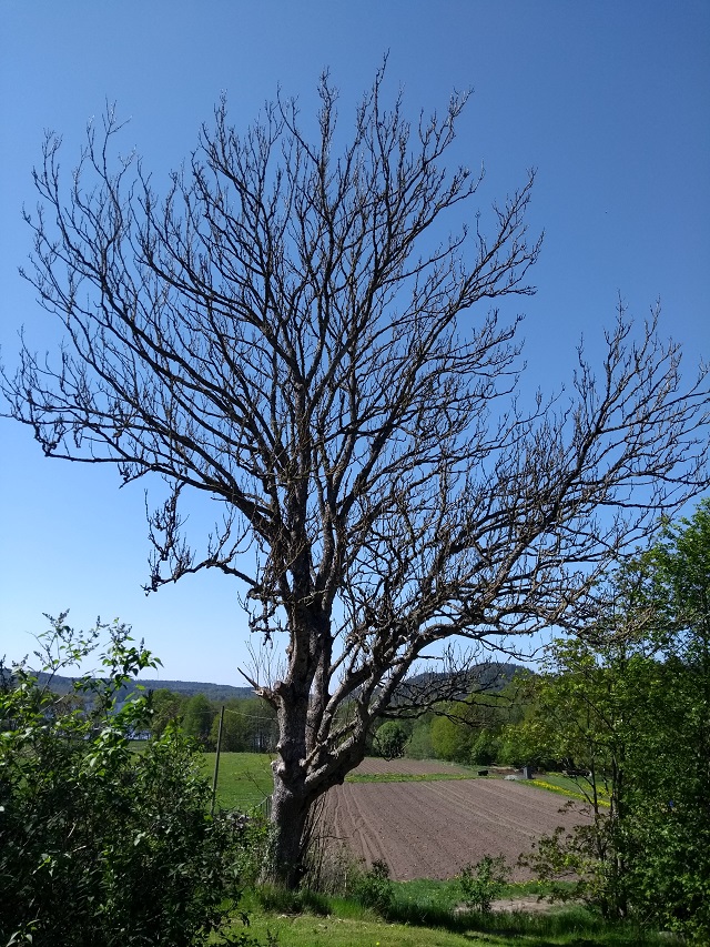Asken på andra sidan vägen, som vi kallar vårt vårdträd, ser som vanligt ut som om den här vintern i alla fall tagit knäcken på den.
