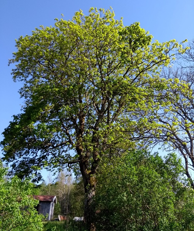 Vid uppfarten grönskar nu vårt ena stora träd, lönnen, för fullt.