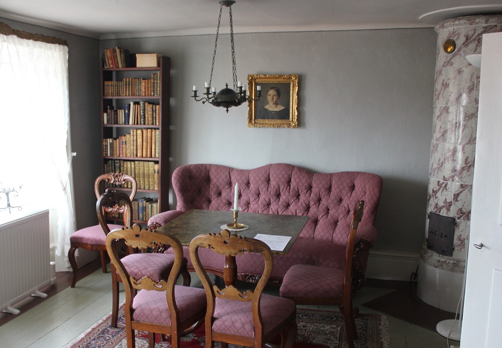 I artikeln ser jag att hon egentligen hade velat ha sitt borgarhus på Fjällgatan 25, på andra sidan gatan. Det huset ligger på en terrass högt ovanför vattnet, omgiven av månghundraåriga lindar, och man vet mycket mer om dess historia, t o m hur möblerna stått.