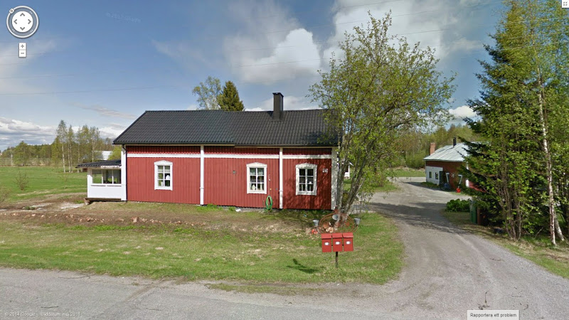 Nu är adressen Skatanvägen 49, men jag kände genast igen huset på Google – utom att man byggt ut åt vänster. Längst åt höger låg alltså kammaren, vänster om den stora köket, sen var huset slut. Lagården är sig precis lik.