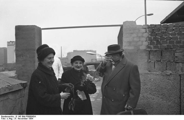 1964 fick östtyska pensionärer tillstånd att resa över till väst. Bilden visar ett känslosamt möte vid Oberbaumbrücke.