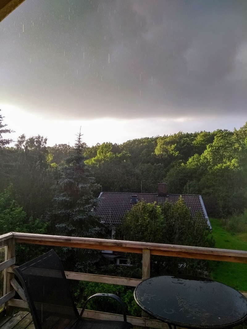 Den följande kvällen satt vi INTE på balkongen, även om himlen såg ännu häftigare ut än det ser ut på bilden. Strecken på bilden är regn, och då menar jag ÖSREGN!