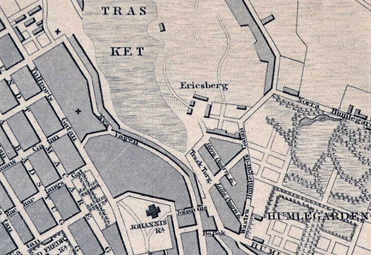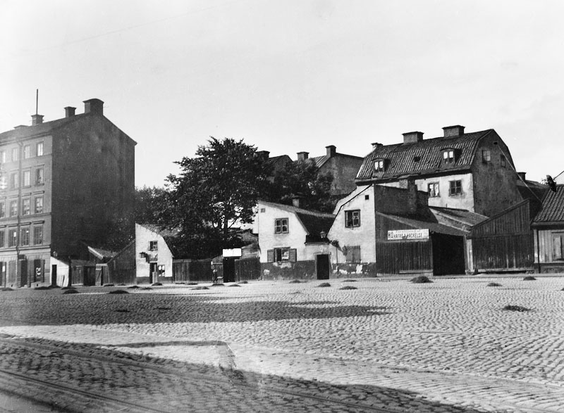 Bilden överst på sidan visar kåkbebyggelsen vid Stora Träskgatan 1895, fotograf okänd (CC-BY) Sthlms stadsmuseum via Stockholmskällan. Nedan en karta över Träsktorget.